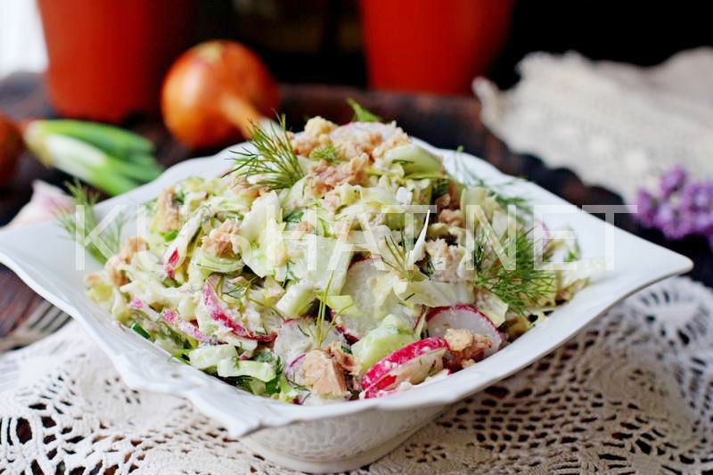 А сейчас давайте перейдем к рецепту и посмотрим, как приготовить салат с капустой и тунцом.