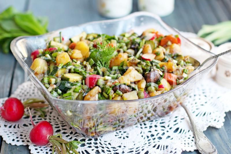 Салат с редиской, черемшой и грибами. Рецепт с фото