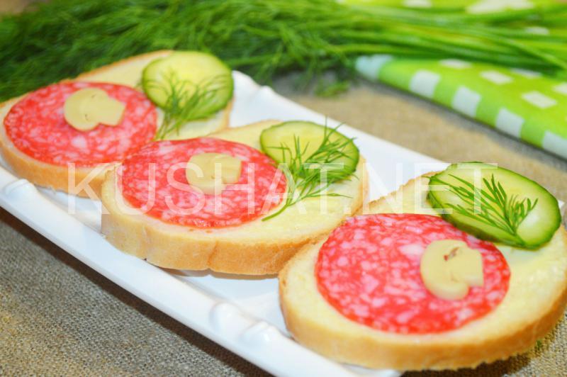 Бутерброды с колбасой салями и огурцами. Пошаговый рецепт