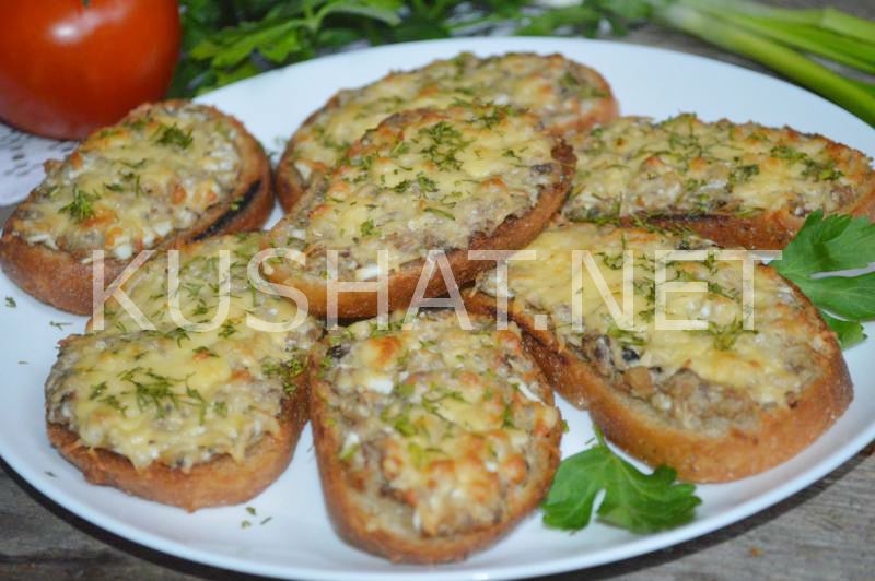Выкладываем бутерброды на противень и запекаем в духовке 15 минут при 180С.