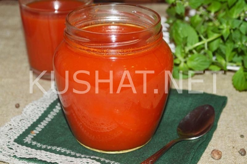 Он прекрасно хранится до следующего урожая, не теряя при этом своих вкусовых качеств. Для приготовления используйте полностью созревшие плоды мясистых сортов помидоров, к примеру, сорт «Бычье сердце».