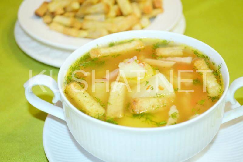 Гороховый суп с копченостями и сухариками. Пошаговый рецепт с фото