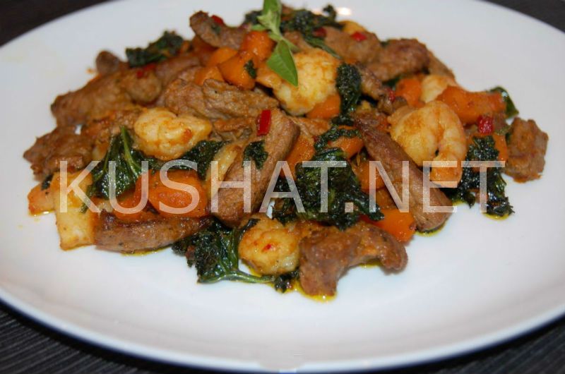 Говядина с креветками и овощами. Пошаговый рецепт с фото