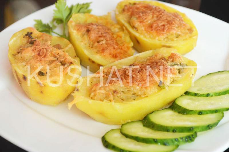 Вкуснейшую фаршированную картошку переложите на тарелку и подавайте к столу вместе с салатами. Приятного вам аппетита. Буду рада, если этот рецепт вам понравится. Также рекомендую приготовить и картошку по-деревенски в духовке.