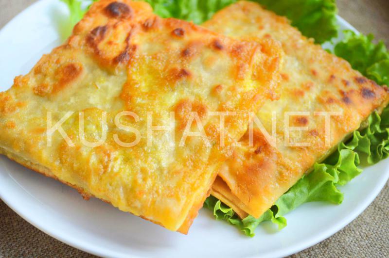 Такие мясные конвертики из лаваша с фаршем можно не только пожарить на сковороде, но и запечь в духовке. Для этого конвертики следует выложить в форму. Полить их сметаной и посыпать тертым сыром. Запекают их при температуре 190С на протяжении 35 минут.