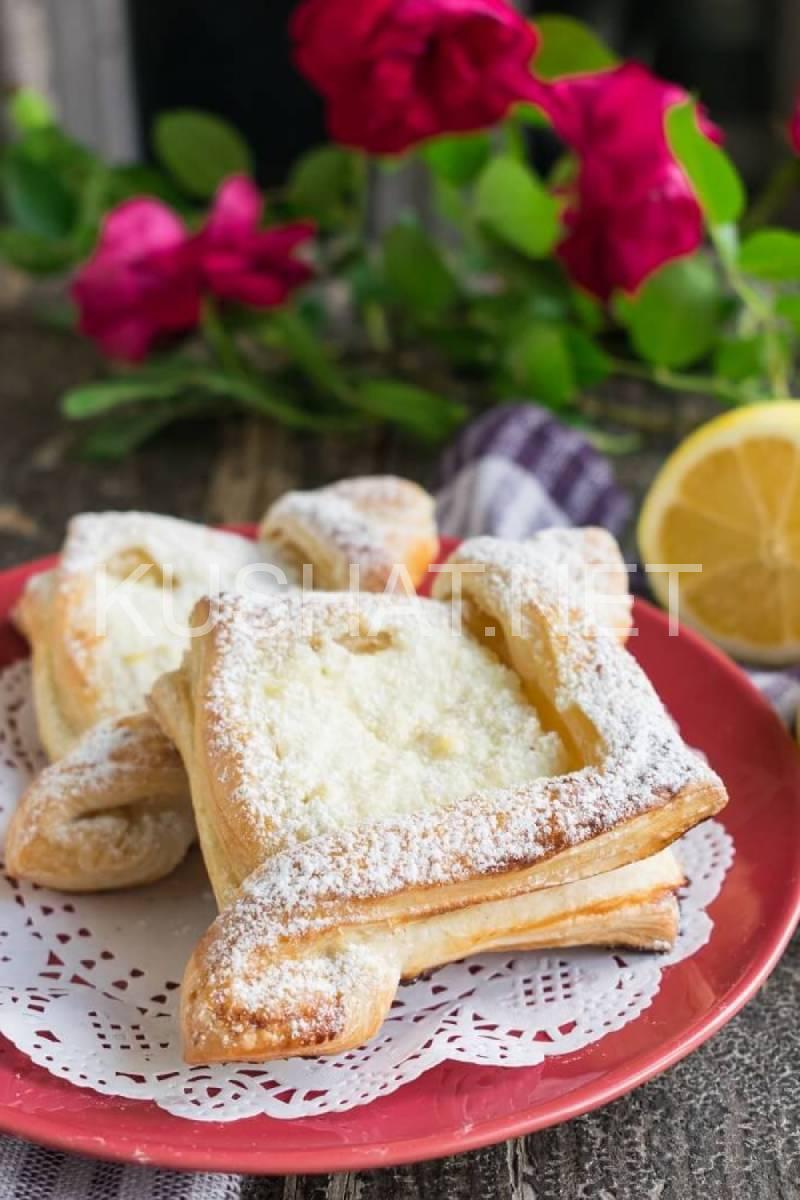 Конвертики из слоеного теста с творогом. Рецепт с фото