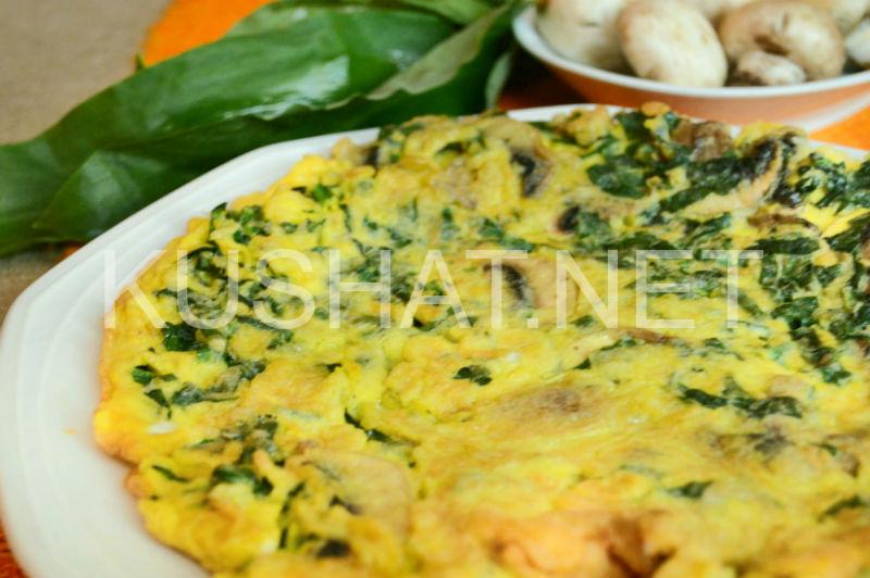Также хочу предложить и еще один вариант приготовления омлета из шампиньонов с добавлением черемши. Совсем скоро наступит весна, и на базарных прилавках будет красоваться молодая черемша. Поэтому, если вы ее любите, то этот рецепт тоже можете взять на заметку. Технология приготовления этого омлета несколько иная.