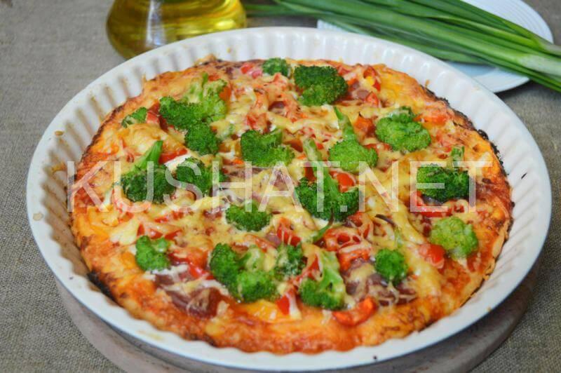 Пицца с брокколи, колбасой и сыром. Пошаговый рецепт с фото