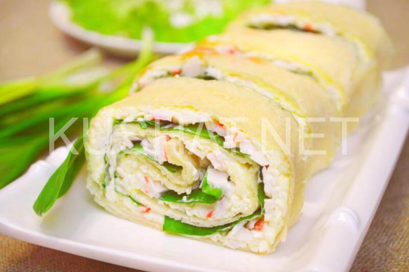 Рулет из лаваша с крабовыми палочками и плавленым сыром. Пошаговый рецепт