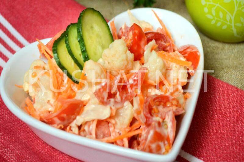 Салат из цветной капусты с помидорами и огурцом – рецепт