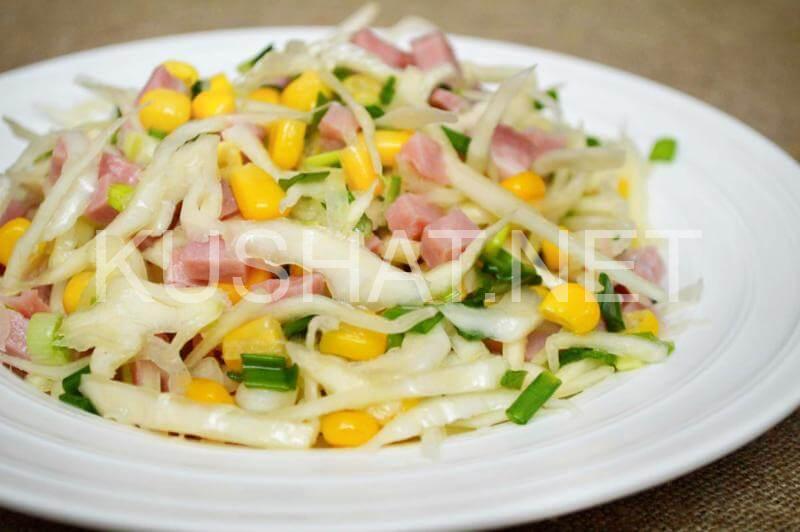 Салат из капусты с ветчиной и кукурузой – рецепт