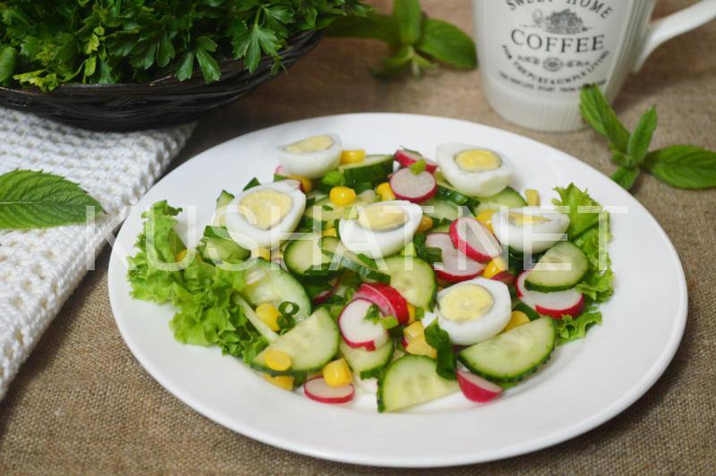 Салат из редиса с огурцом, яйцами и кукурузой. Пошаговый рецепт с фото