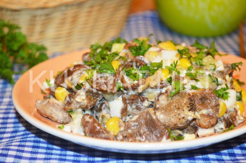 Салат с грибами, кукурузой и огурцами. Пошаговый рецепт с фото