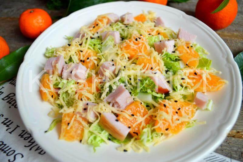 Салат с копченой курицей и мандаринами. Рецепт с фото