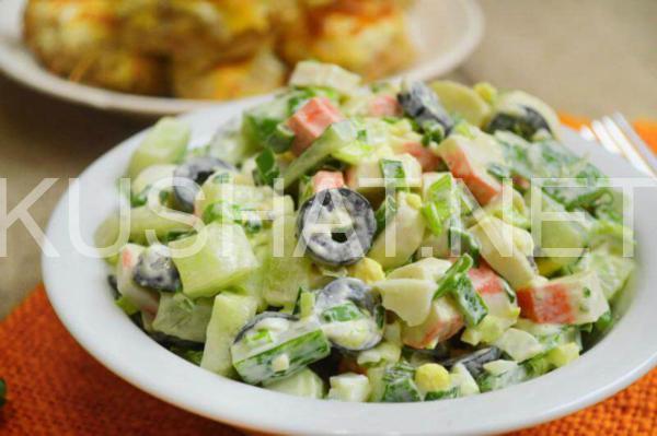 Салат с крабовыми палочками, оливками и огурцом