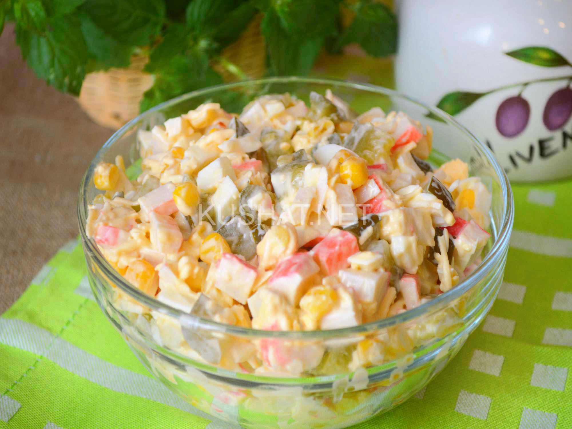 Салат с крабовыми палочками и солеными огурцами – рецепт