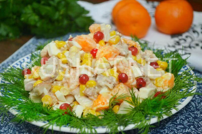 Салат с курицей и мандаринами. Пошаговый рецепт с фото