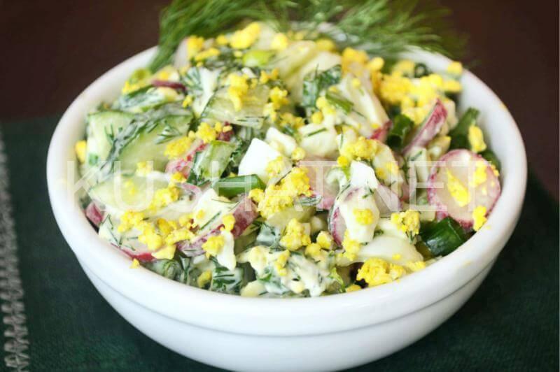 Салат с редисом, огурцом, яйцом и сметаной – рецепт