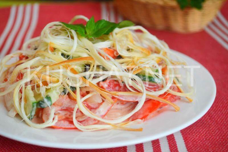 Салат с сыром косичкой и помидорами – рецепт