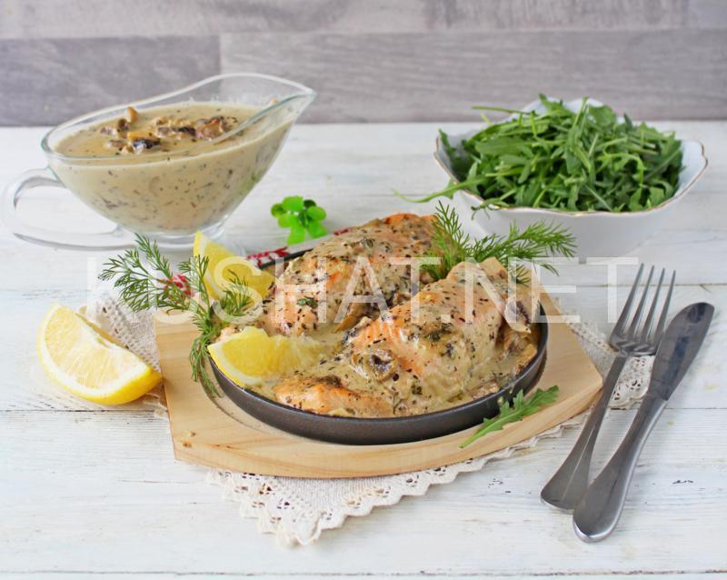 А сейчас давайте перейдем к рецепту и посмотрим, как приготовить стейки семги под сливочным соусом с грибами пошагово с фото.