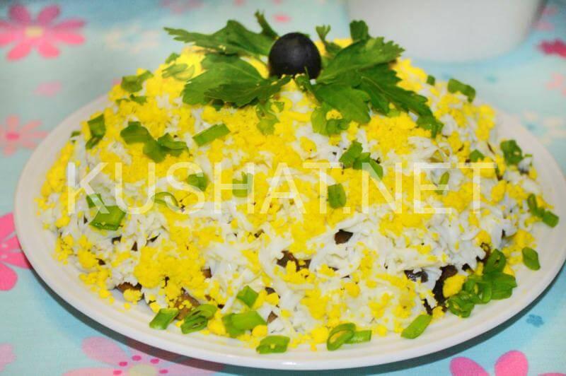 Слоеный салат с грибами и ветчиной. Пошаговый рецепт с фото