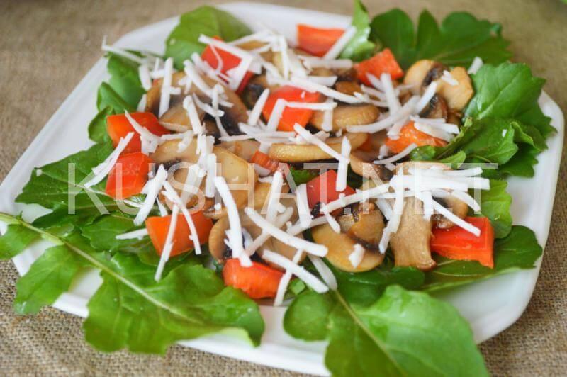 Теплый салат с рукколой и грибами шампиньонами. Пошаговый рецепт с фото