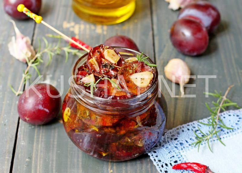 Вяленые сливы с чесноком и травами в духовке. Рецепт с фото