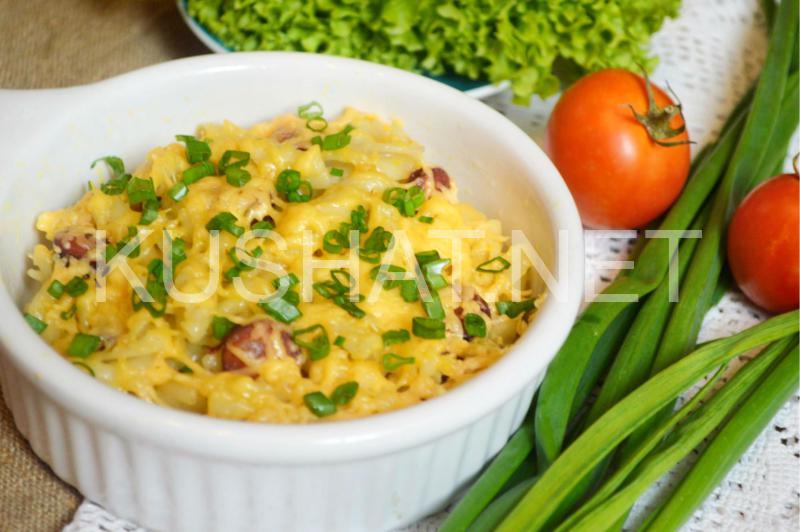 Запеканка из макарон с колбасой и сыром – рецепт